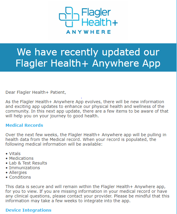 Developed customer-related emails for the Flagler Health+ Anywhere App launch